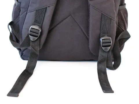 Отделения имеют долговечную реверсивную молнию с двумя металлическими бегунками. Туристический рюкзак можно носить не только на спине. В спинке рюкзака находится карман, в который при желании можно спрятать ремни, а из дополнительных отделений спереди достаются лямки, что позволяет носить рюкзак как удобную спортивную сумку.