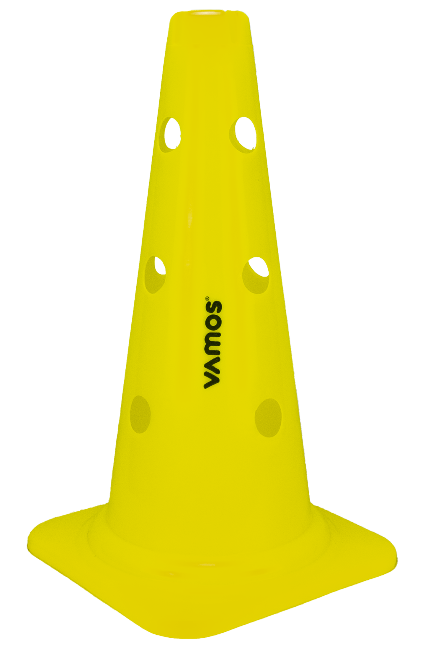 Для подготовки спортивных соревнований используется определённый набор спортинвентаря. Причём для каждого вида спорта предназначены индивидуальные предметы. Но практически всегда требуется разметка поля либо спортплощадки. Если раньше это выполняли посредством окрашивания, устройства оградительных конструкций и т.д., то сейчас преимущественно используются конусы. Это современные изделия, которые очень просты, как в монтаже, так и в эксплуатации. Конус с отверстиями для перекладин. На каждом конусе нанесен логотип Vamos.
