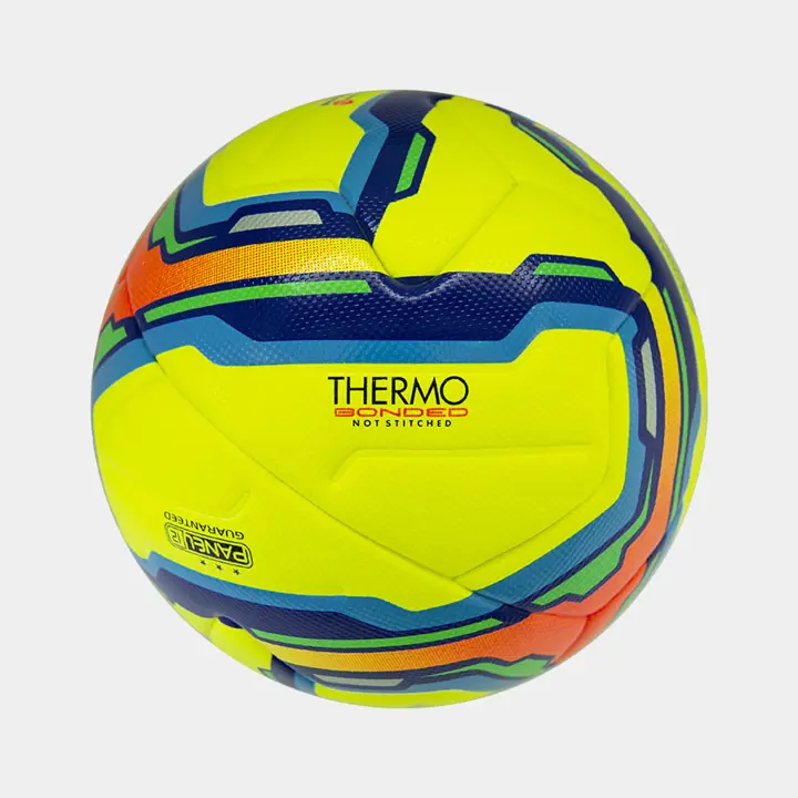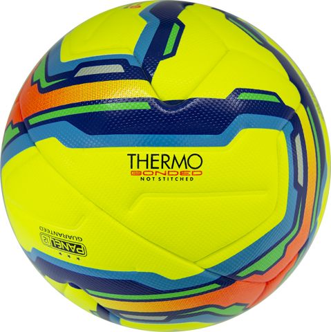 12 панелей инновационной формы соединены методом термосклеивания по новейшей технологии THERMO BONDED, использование которой придаёт мячу высокую водонепроницаемость и сферичность.